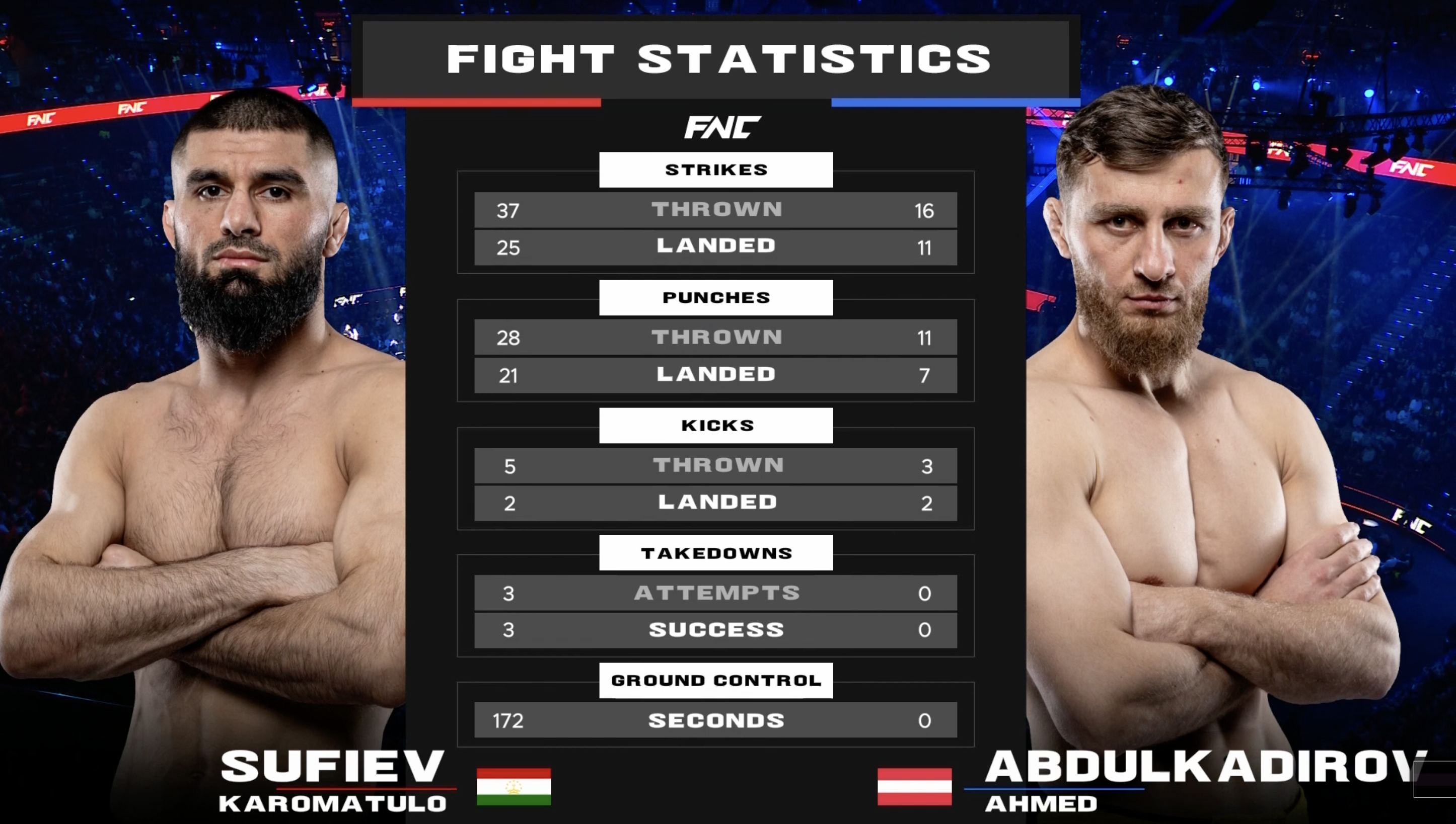 Za dugogodišnje pratitelje FNC-a, Abdulkadirovo ime nosilo je dodatnu dimenziju. Tijekom karijere dijelio je kavez s borcima poput Maura Paixaa i Sahila Siraja, poznatih i publici koja pamti njihove okršaje s Markom Bojkovićem. Borio se i s Alexandreom Ribeirom, čije se ime neizbježno veže uz onaj sirovi, gotovo kaotični “bare knuckle” obračun s Vasom Bakočevićem na FNC 17 priredbi u Beogradu, a u njegovom rezimeu stoji i meč iz povoja njegove profesionalne karijere protiv današnjeg UFC borca, Slovaka Ľudovíta “The Highlight” Kleina.