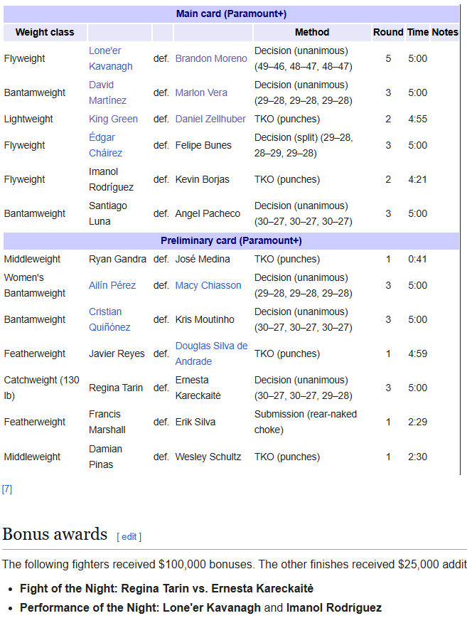 26-godišnjem Meksikancu ovo je treći uzastopni poraz, a Green je u 52. MMA nastupu došao do 34. pobjede. Nakon pobjede iskazao je želju da se bori protiv Natea Diaza.