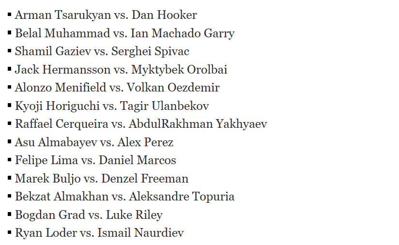 UFC je očito svjestan kako moraju ostaviti dobar dojam prvim eventom među katarskim šeicima pa su stoga popunili "fight card" uistinu vrhunskim mečevima. Naime, jučer je objavljeno još nekoliko mečeva koji će biti dio ove priredbe.